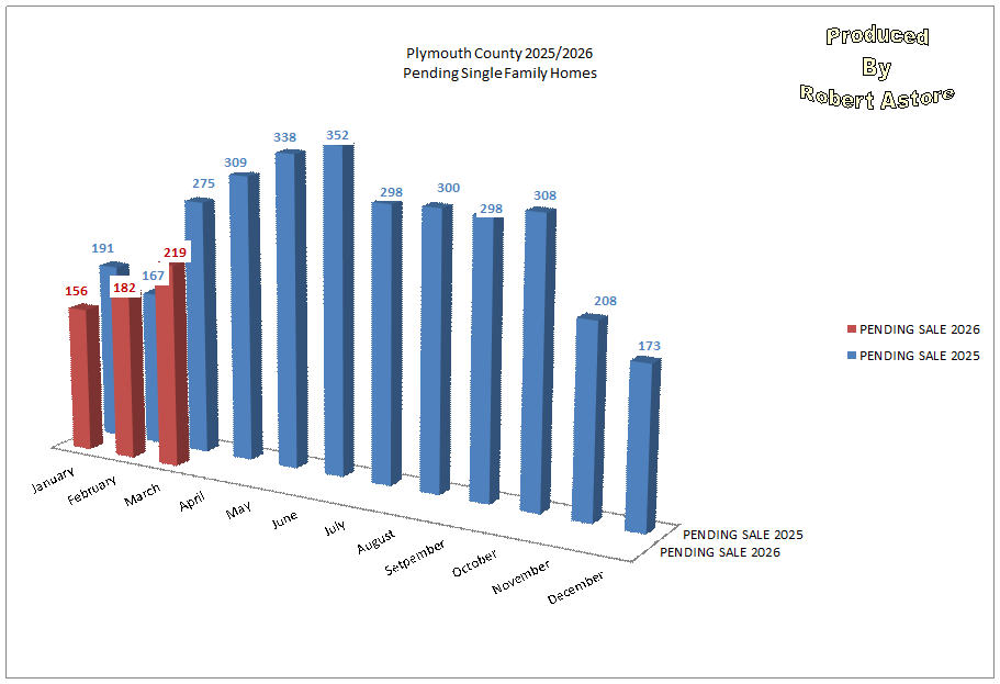 Pending home sales charts display single-family homes that have a contract for sale for each month, along with a comparison to the previous year.